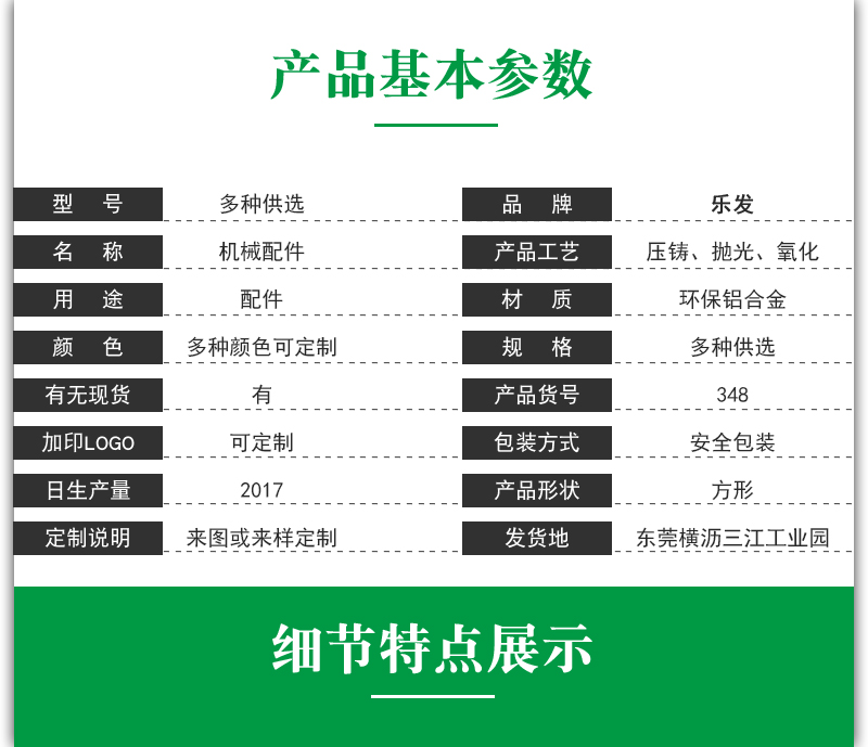 本款配件采用的是環保鋁合金材質,鋁合金是工業中應用最廣泛的一類有色金屬結構材料,在航空、航天、汽車、機械制造、船舶 及化學工業中已大量應用。工業經濟的飛速發展,對鋁合金焊接結構件的需求日益增多,使鋁合金的焊接性研究也隨之深入。目前鋁合金是應用最多的合金。