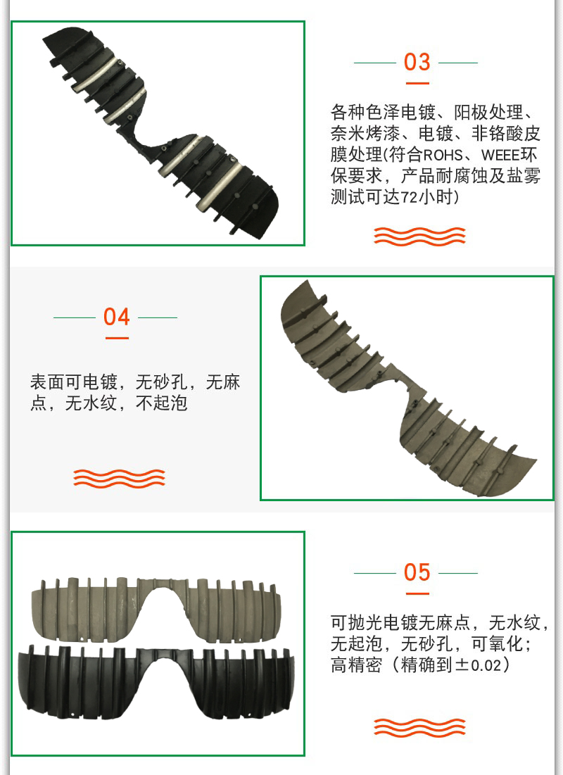 壓鑄成品密度均勻,產品不易斷裂、變形、質量穩定