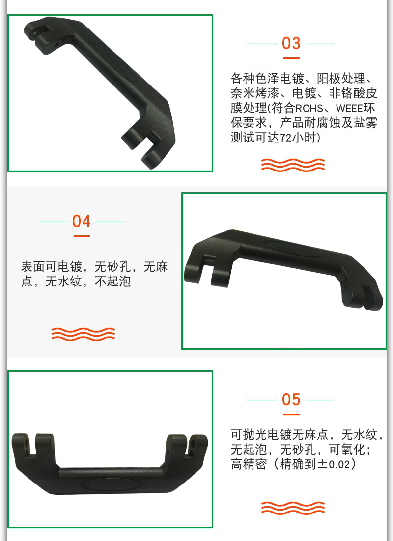 精密鋁合金壓鑄把手配件產(chǎn)品可拋光電鍍無砂孔無水紋