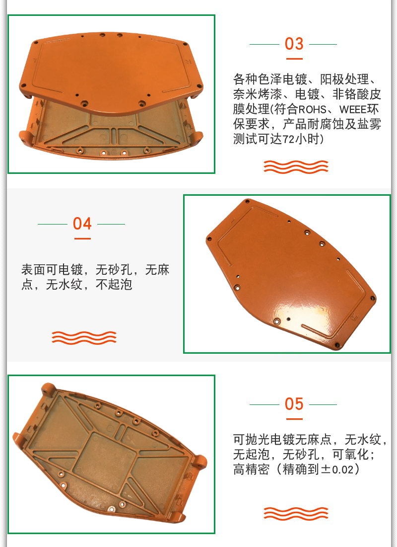 - 壓鑄件可保證無水紋,不起泡,不滲水,不漏氣