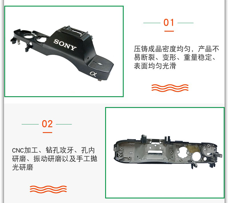 壓鑄成品密度均勻,產品不易斷裂、變形、質量穩定