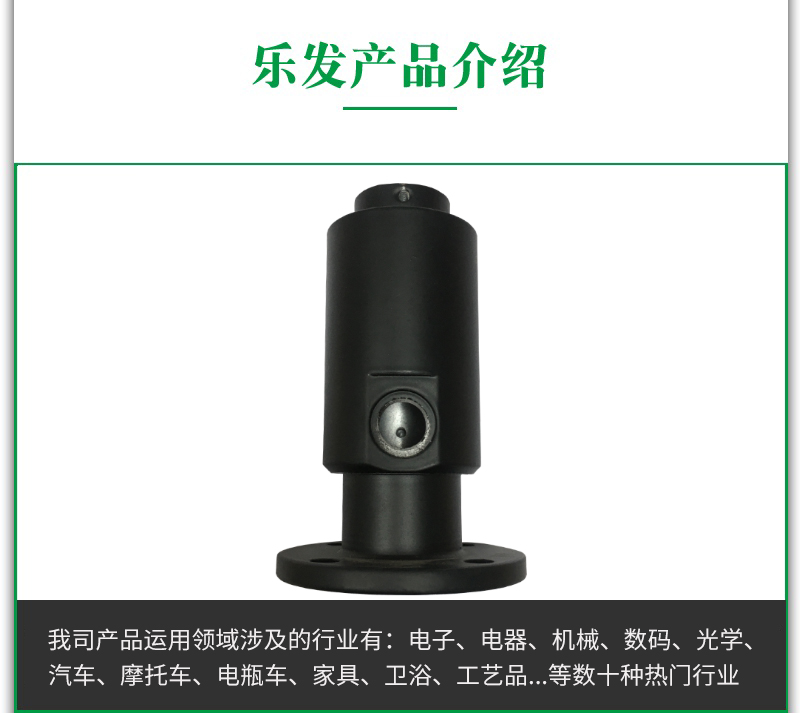 本款配件采用的是環保鋁合金材質,鋁合金是工業中應用最廣泛的一類有色金屬結構材料,在航空、航天、汽車、機械制造、船舶 及化學工業中已大量應用。工業經濟的飛速發展,對鋁合金焊接結構件的需求日益增多,使鋁合金的焊接性研究也隨之深入。目前鋁合金是應用最多的合金。