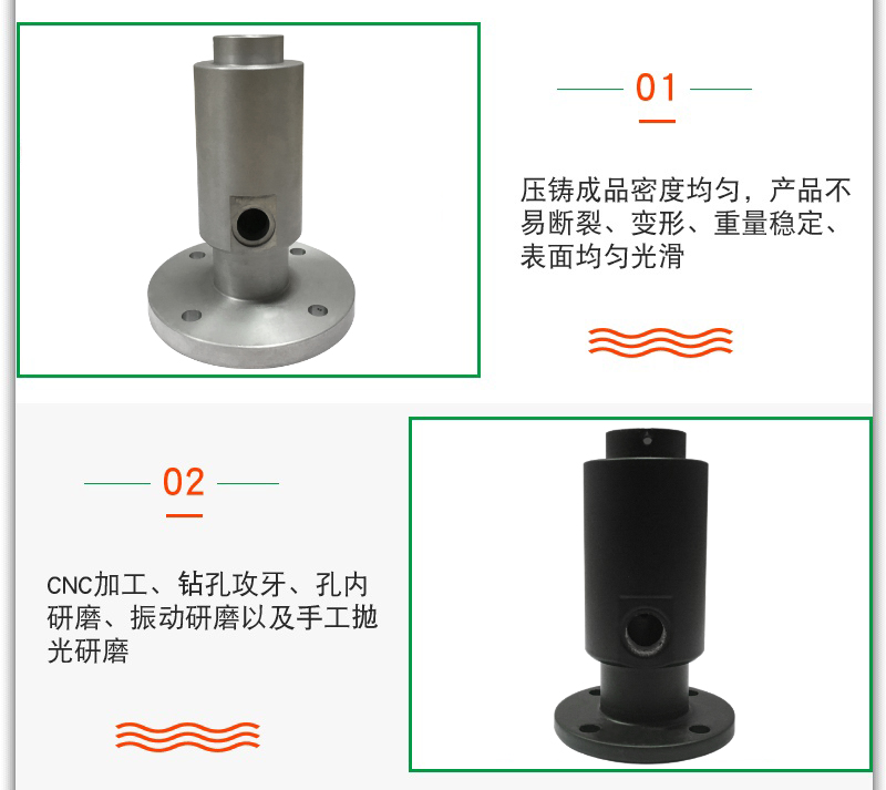 - 壓鑄件可保證無水紋,不起泡,不滲水,不漏氣