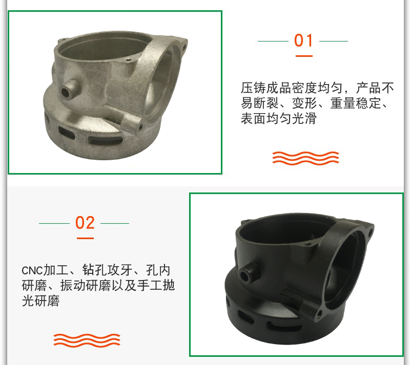 壓鑄成品密度均勻,產(chǎn)品不易斷裂、變形、質(zhì)量穩(wěn)定
