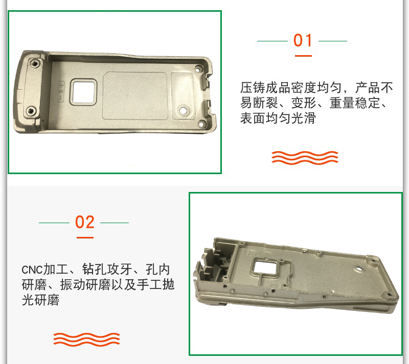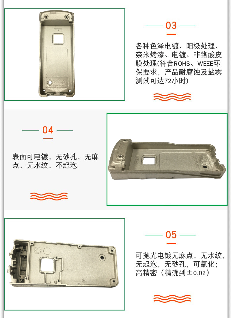- 壓鑄件可保證無水紋,不起泡,不滲水,不漏氣
